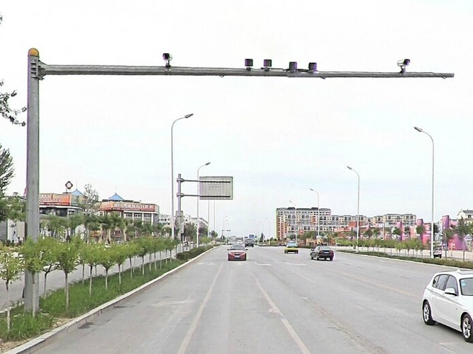 道路監控桿也稱監控桿與監控立桿,立桿要求攝像機離地面高度一般不低于5米,挑臂長度3~5米,立桿下端管徑應在220 mm±10mm、上端管徑應在120 mm±5mm,管壁厚度應≥6mm,表面防腐、抗臺風。立桿基礎深度不低于1.5米,基礎直徑大于1米,采用混凝土灌筑,以確保立桿的牢固度。